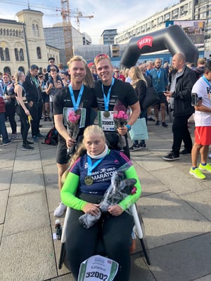 Det började med att vi skaffade en Team Twin Edition löprullstol och att vi hittade två assistenter som ville springa med henne. Före den stora dagen tränade de tre och sprang tillsammans.